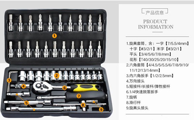 塑料箱工具套装46件装